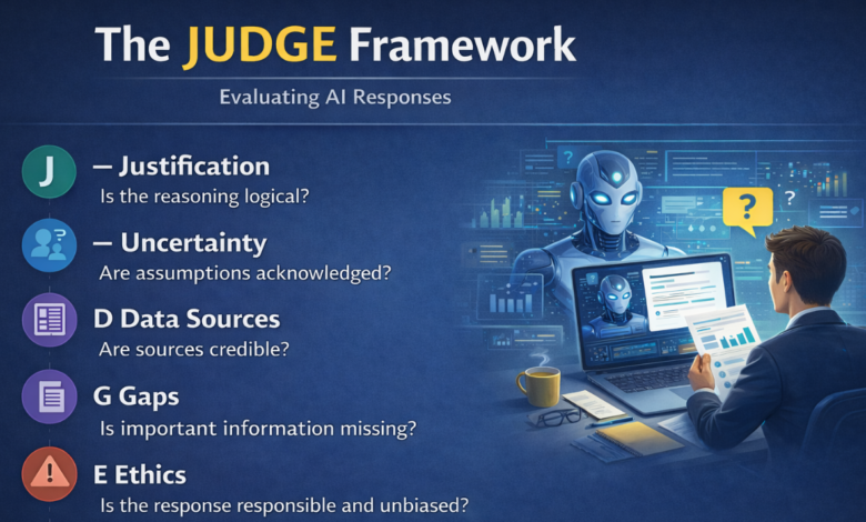 The JUDGE Framework provides a structured way to review AI-generated answers before relying on them.